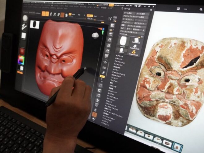 二上射水神社祭礼築山行事面ZBrushを用いてスキャンデータの細部の修正をおこなう