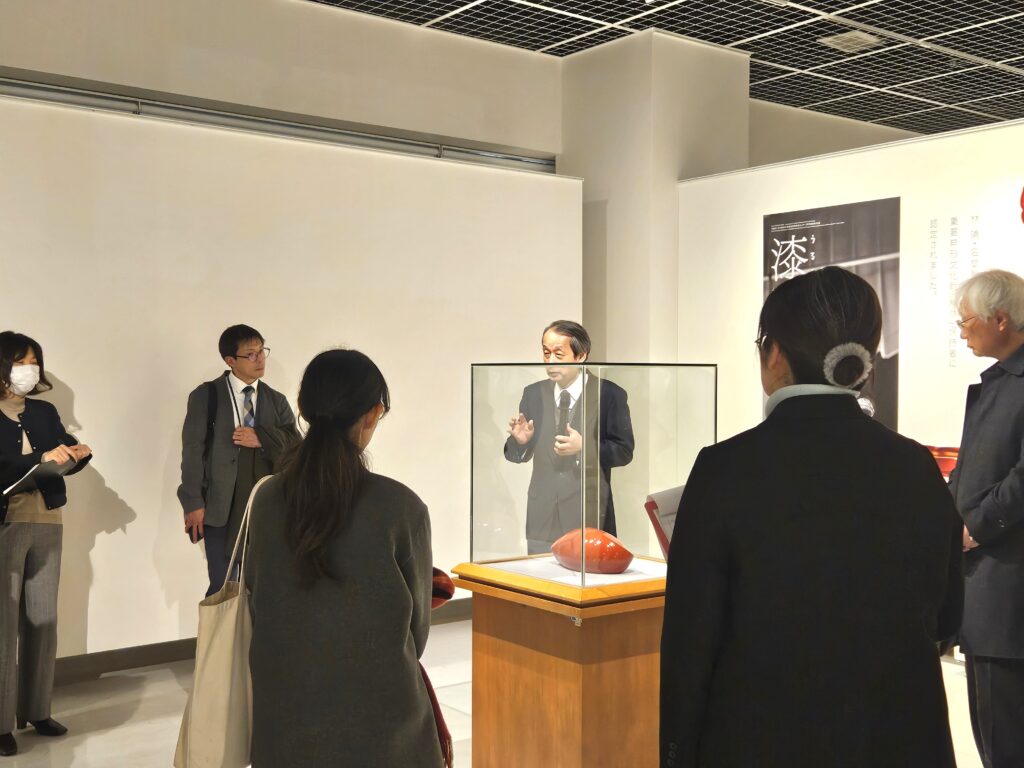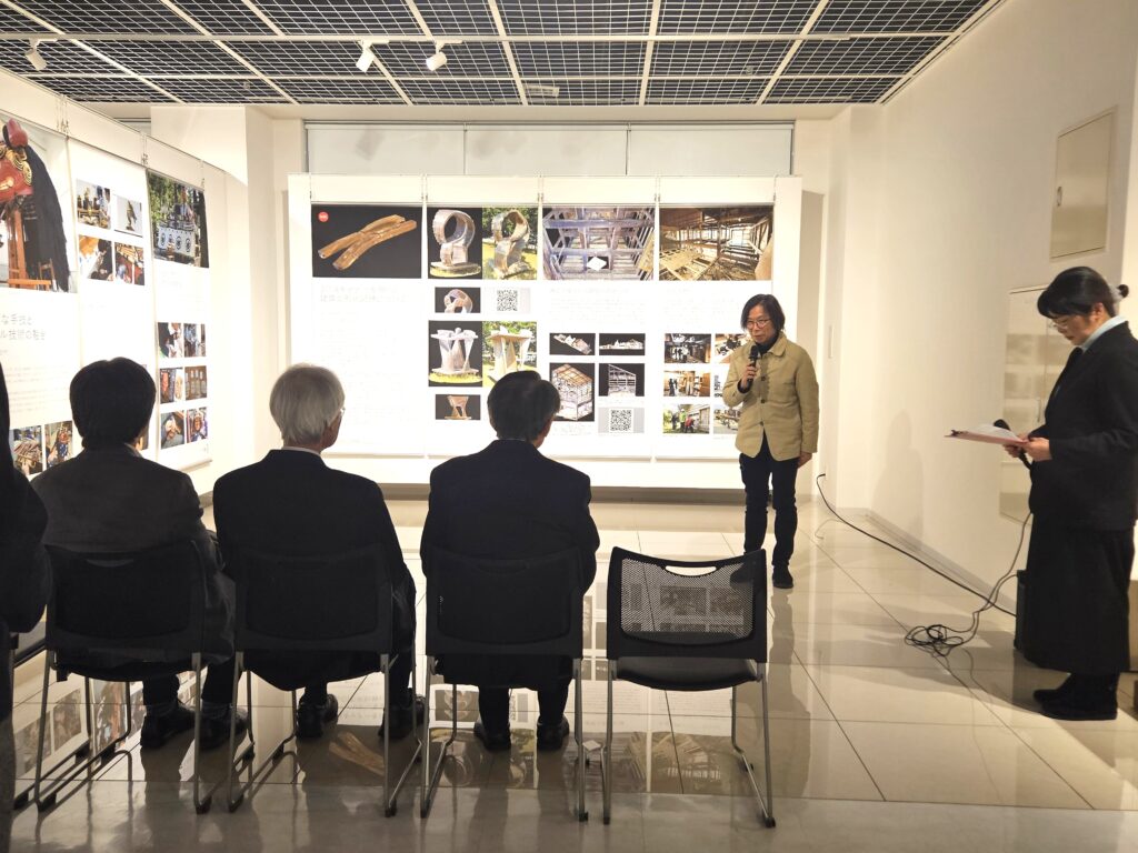 同作品の解説に添えて、林名誉教授からは、「今、”伝統”と呼ばれているものは”100年前の革新”であり、今、”革新”と言われているものは多分、”100年後の伝統”になる。大学がそういったことを発信する場所になっていて、本当に嬉しく感じている」との言葉があり、技藝院の意義について改めて思いを馳せる機会となりました(写真3)。